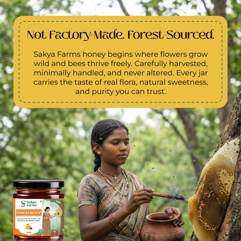 Our forest honey is sourced raw from the Western Ghats and kept as close to nature as possible.